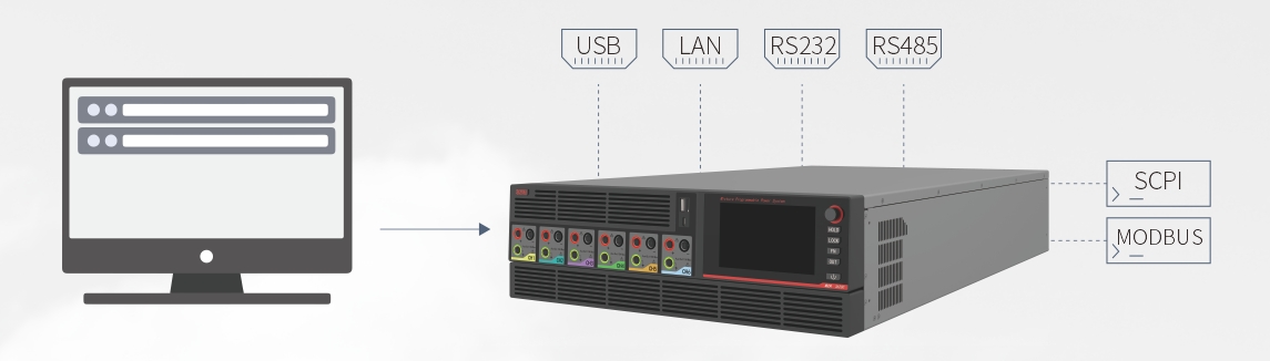 內(nèi)置USB、LAN、選配RS232/RS485多(duō)種±≥♠γ通(tōng)信接口,支持SCPI/MO₩♦↑≠DBUS命令集,便于集成至自(zì)動化(huà)測試系統★±∞中,實現(xiàn)遠(yuǎn)程控制(♥ε≤zhì)與監控。